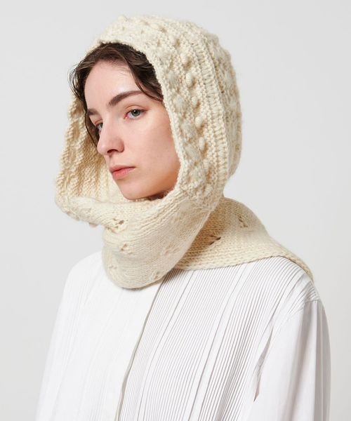 頭から首元まで1アイテムでカバーできるフードマフラーは、寒い季節に実用性とデザイン性を兼ね備えており、今シーズンワードローブに取り入れていただきたい一品です。