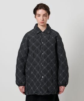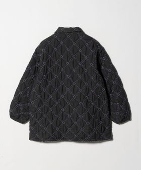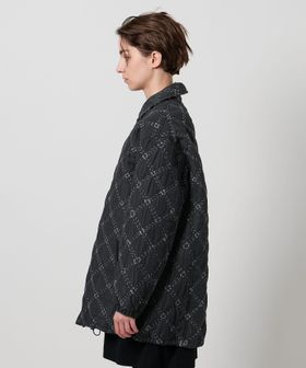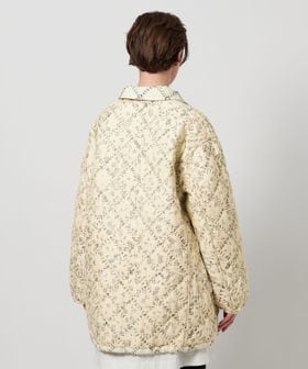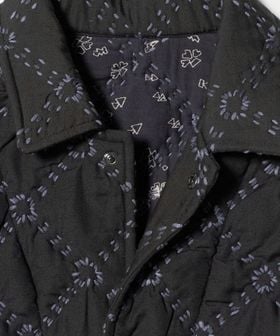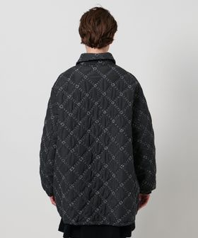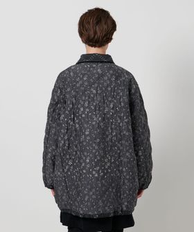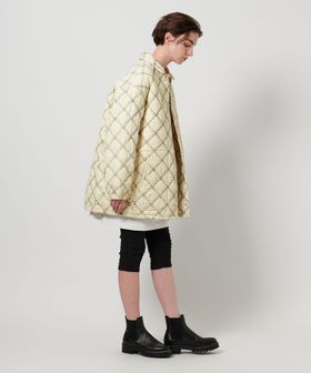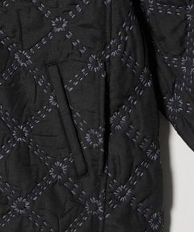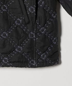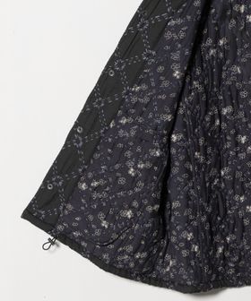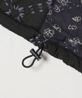 表地にポリエステルを、裏地には薄地のコットンを用いて重ね合わせ、間に中綿を挟んだ仕立てとなっています。