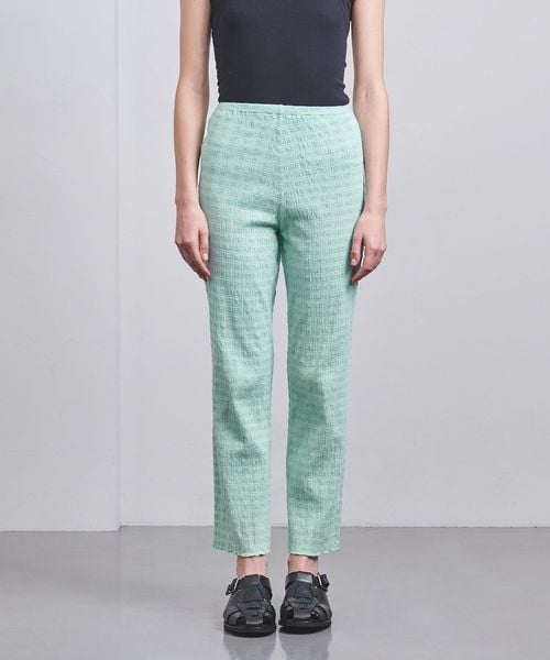 また、綿糸に麻を少し加え、生地表面に陰影をつけて織り上げることで、同色のシャドーチェックが浮かび上がるように仕立てました。