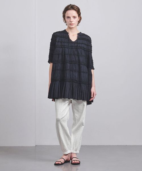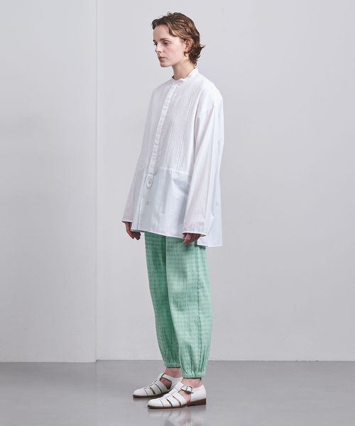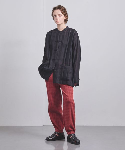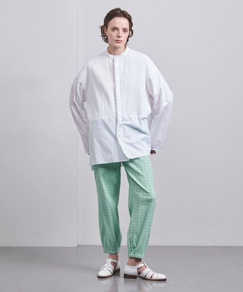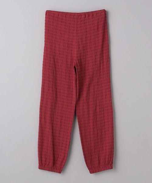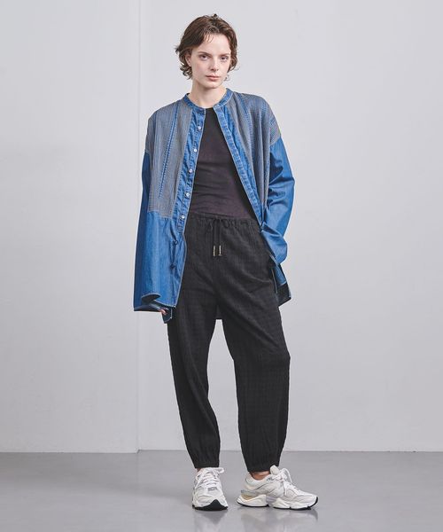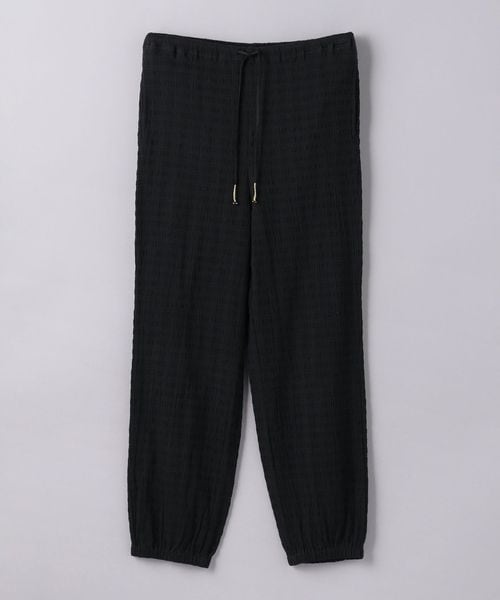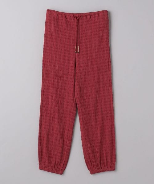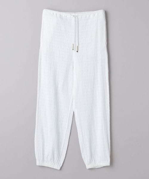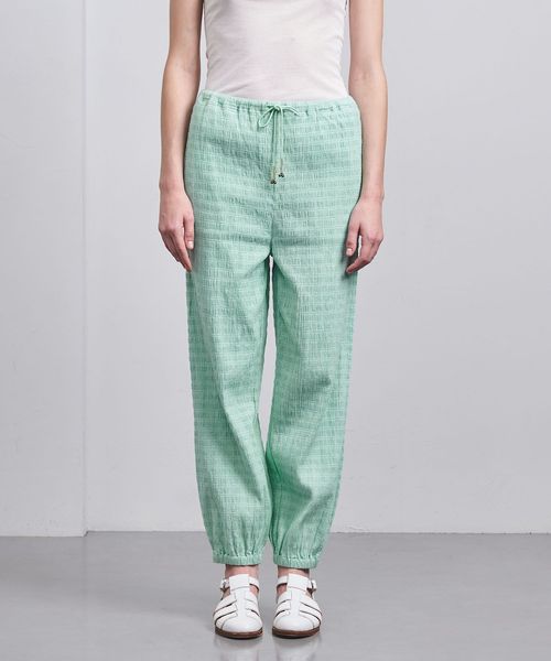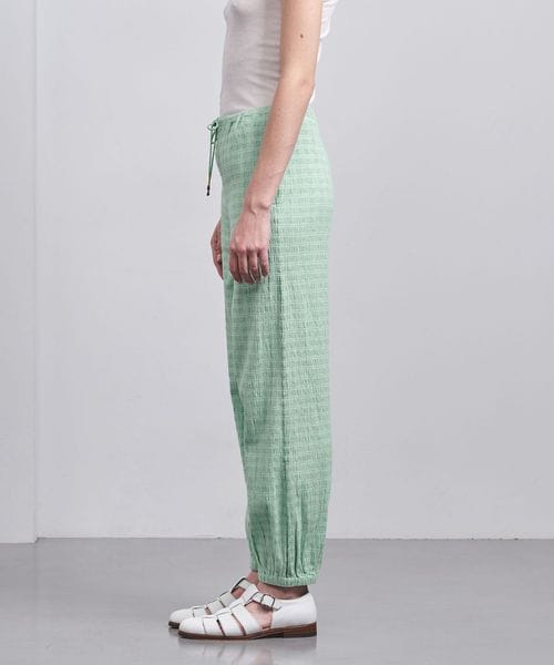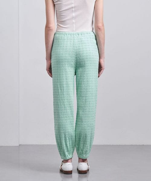 裾にゴムを入れ絞りのあるシルエットが新鮮な新しいデザインのパンツ。