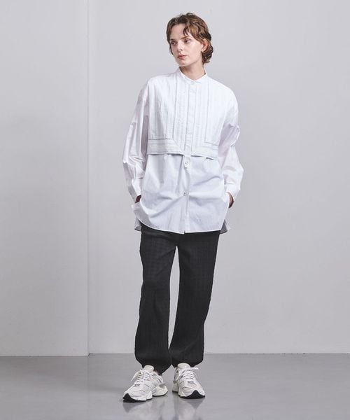 ボリュームシルエットのブラウスやカットソーとのコーディネートがおすすめ。