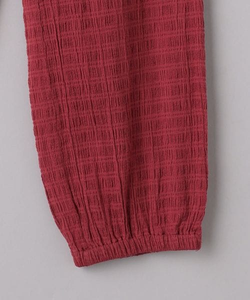 また、綿糸に麻を少し加え、生地表面に陰影をつけて織り上げることで、同色のシャドーチェックが浮かび上がるように仕立てました。