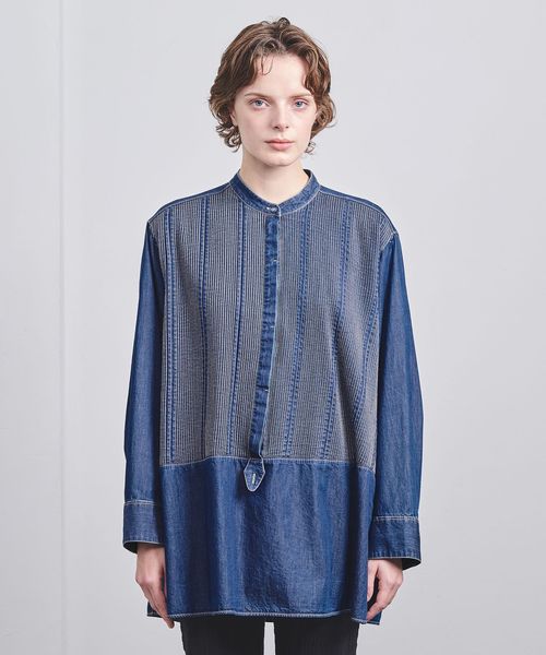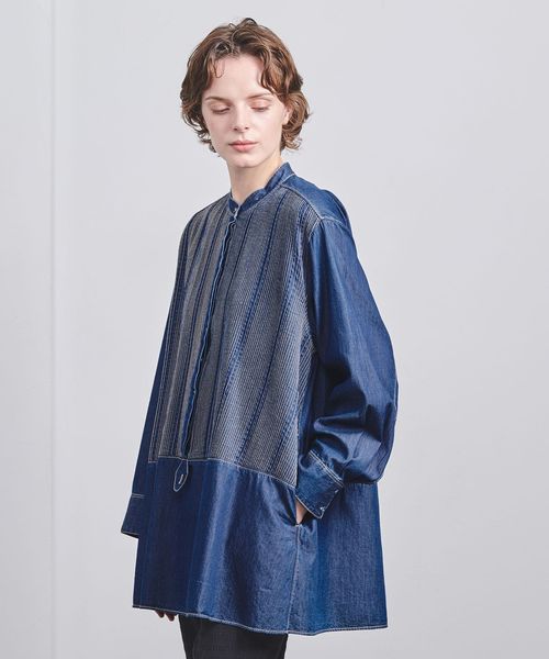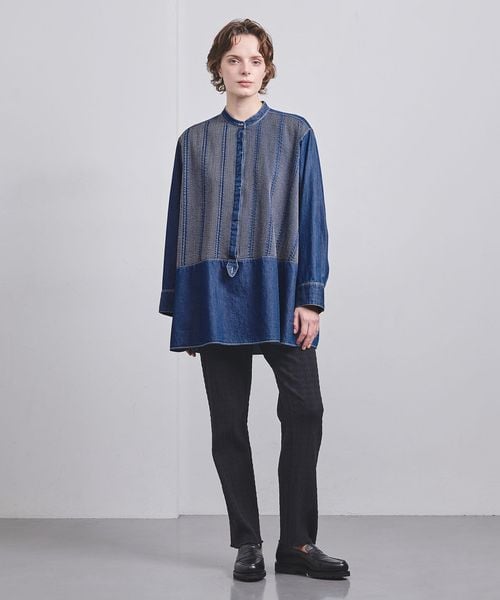 ゆったりとしたシルエットながら、バンドカラーを採用することで清潔感と気品を感じられる一着。