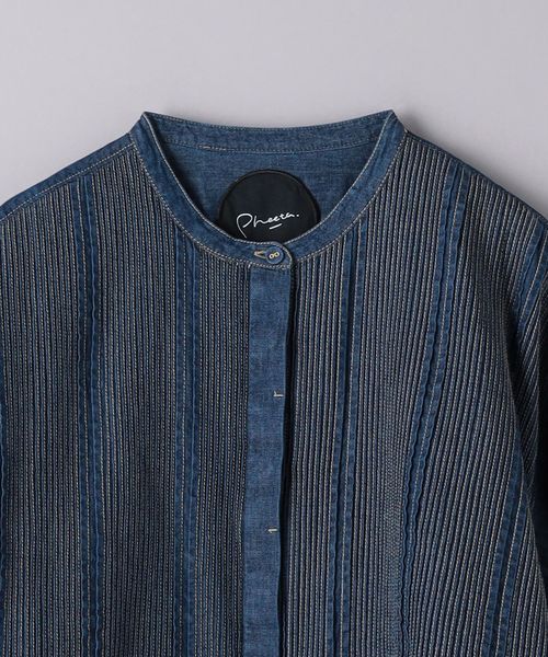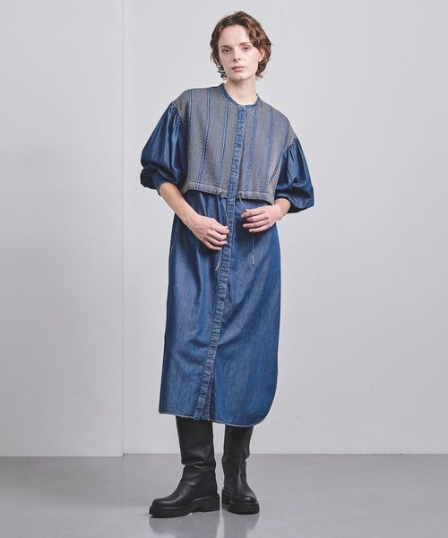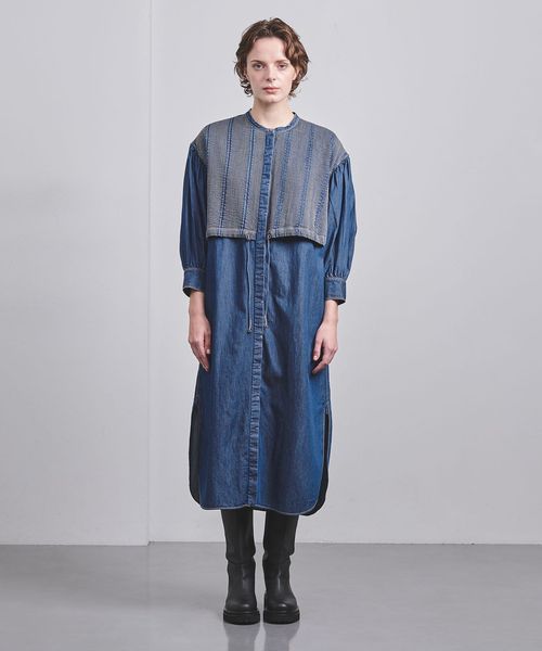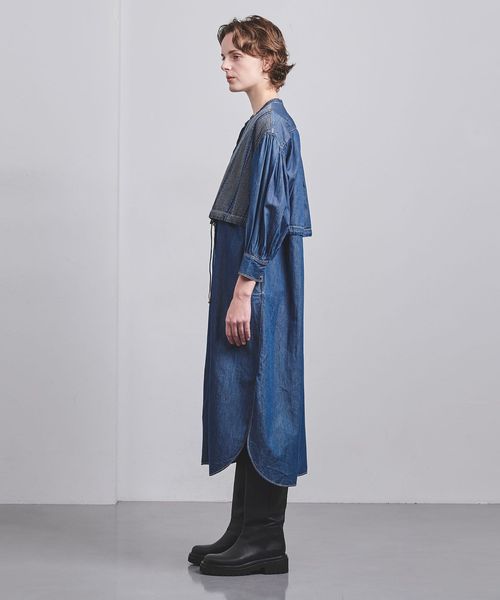 フロントに緻密なピンタックをあしらったデニムワンピース。