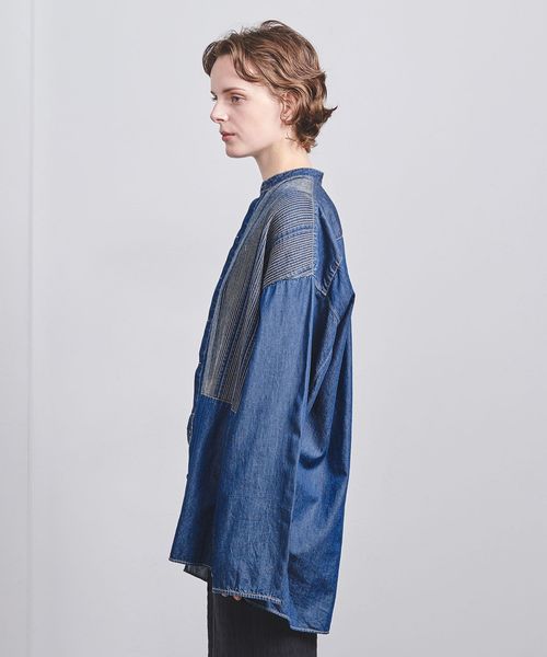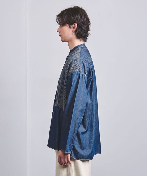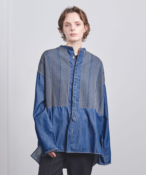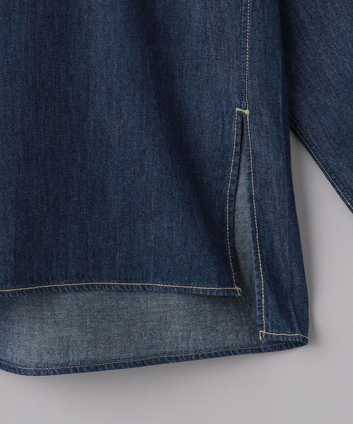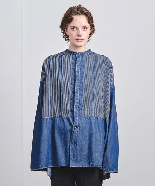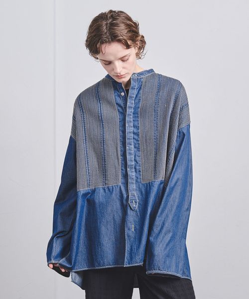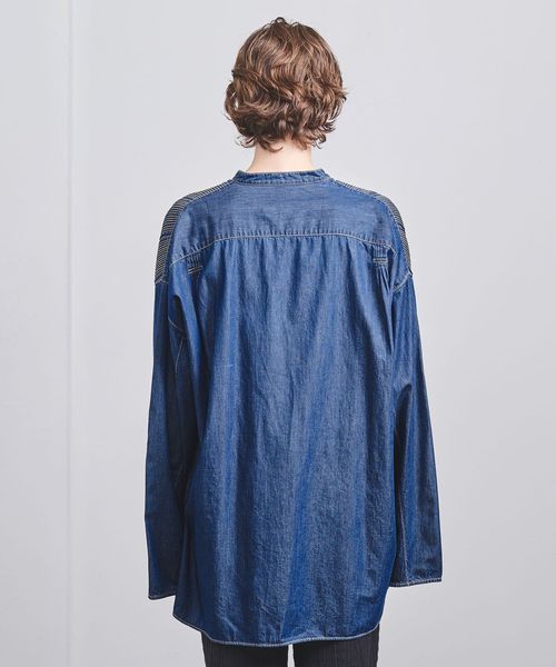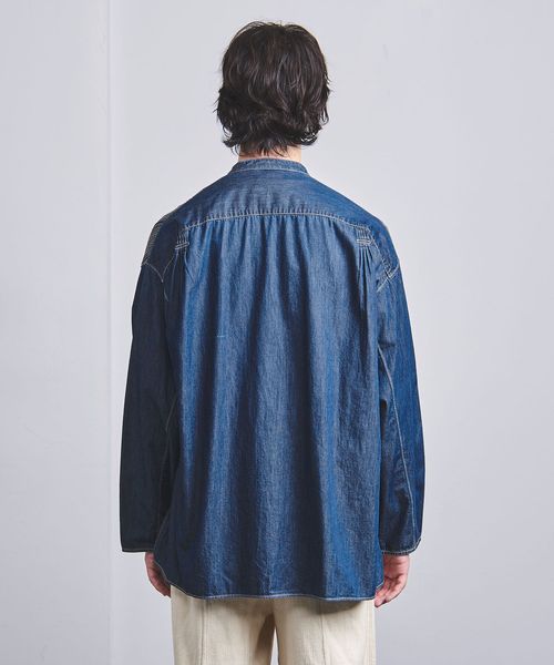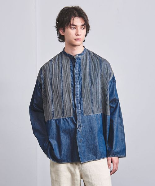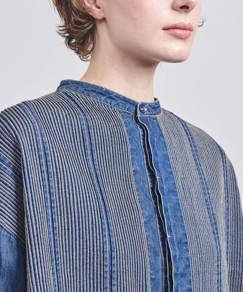 フロントに緻密なピンタックをあしらったデニムシャツ。