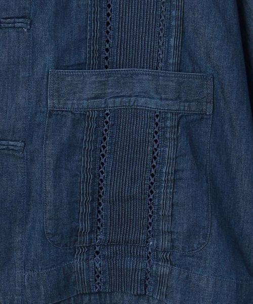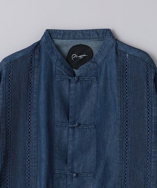 繊細なピンタックのディテールが特徴的なデニムシャツ。