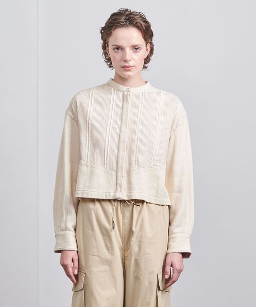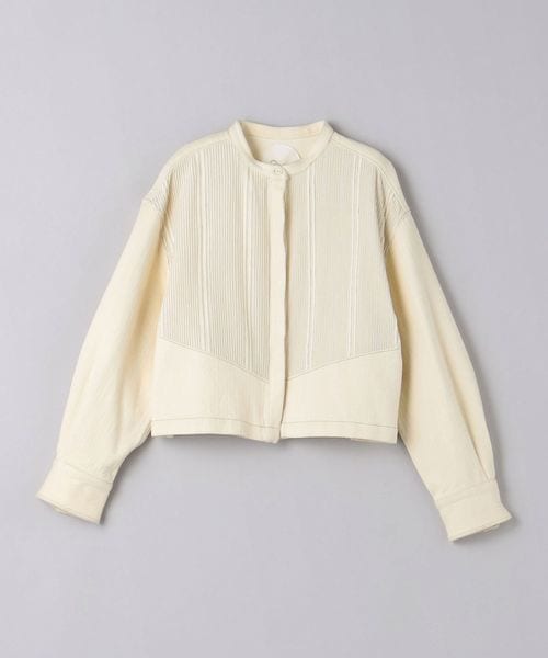 繊細なピンタックが華やかな温もりを与え、リラックス感がありながらも、ショート丈ですっきり着ていただけるデザイン。