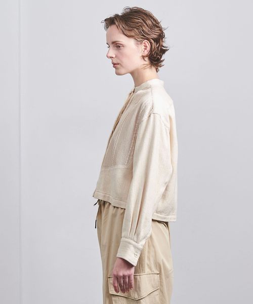 甘織の手織り生地の風合いが美しいショート丈のシャツジャケット。