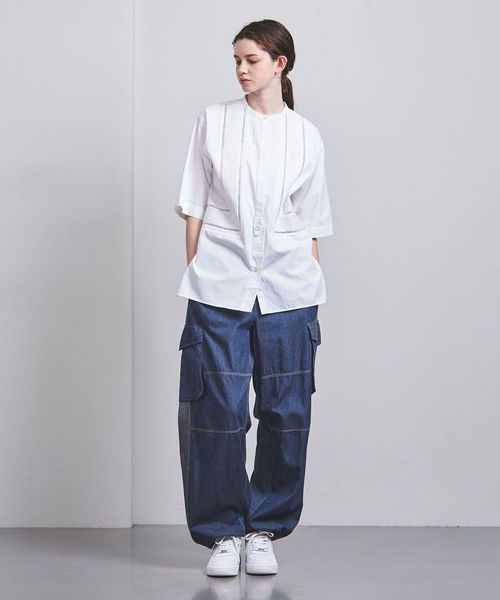通年でお召しいただける素材でシャツやカットソーなど様々なアイテムとのスタイリングを楽しめます。