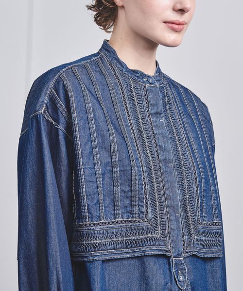 レイヤードしているようなヨークのデザインが特徴の華やかな一着。