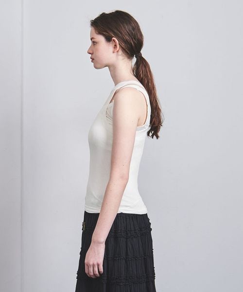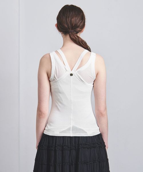 ネックをUとY字型のデザイン違いで組み合わせた、レイヤードタンクトップ。