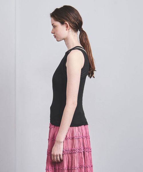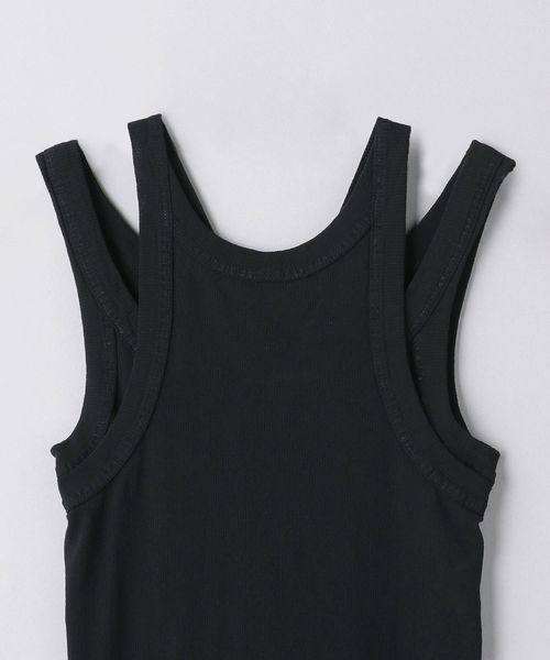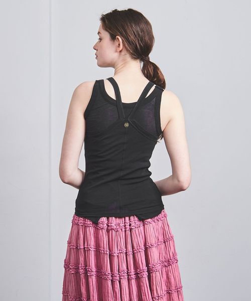 ネックをUとY字型のデザイン違いで組み合わせた、レイヤードタンクトップ。
