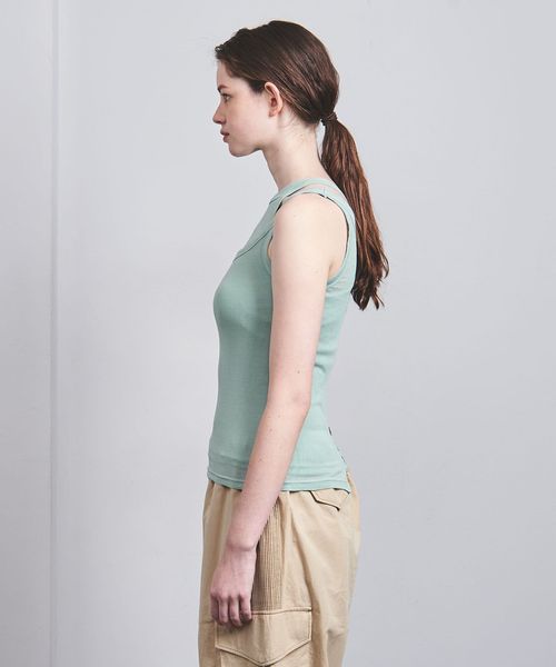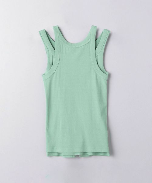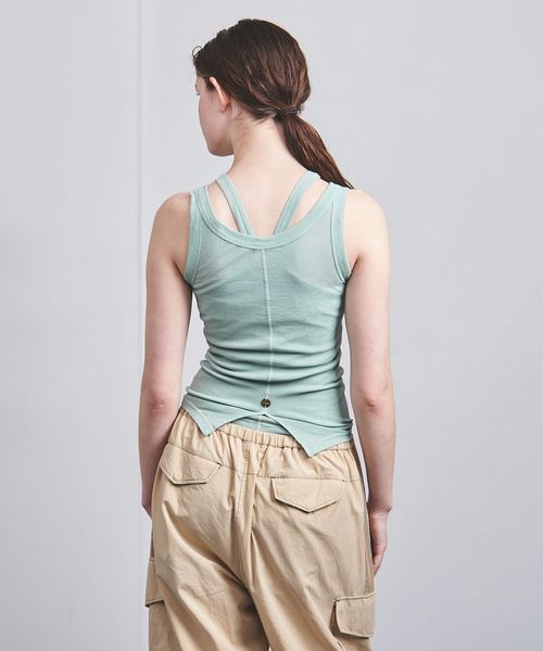 ネックをUとY字型のデザイン違いで組み合わせた、レイヤードタンクトップ。