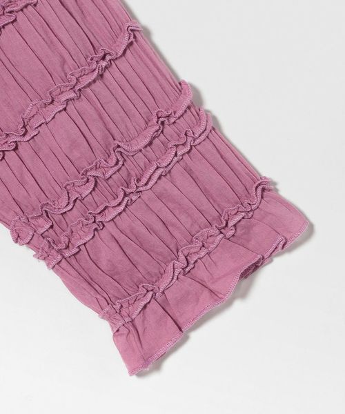 ボイルの薄さを活かし、ギャザーを寄せ集めた生地に、シャーリングゴムをフリルと一緒に縫い付けました。