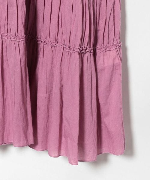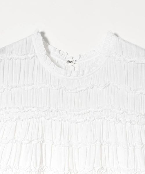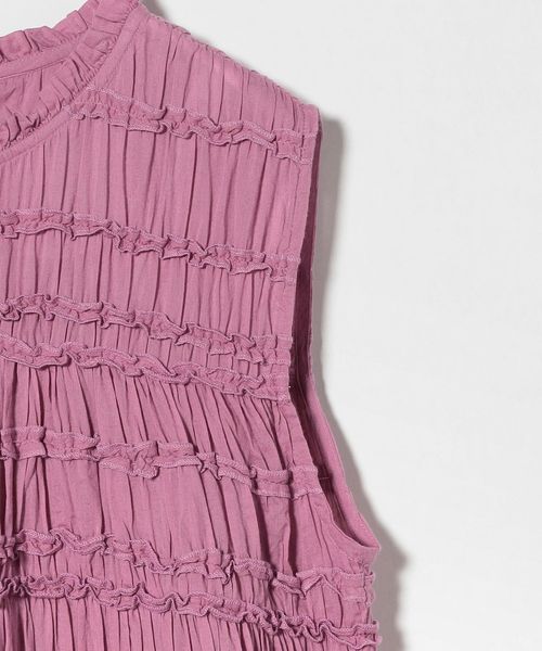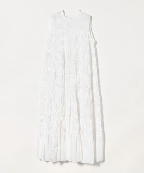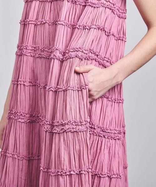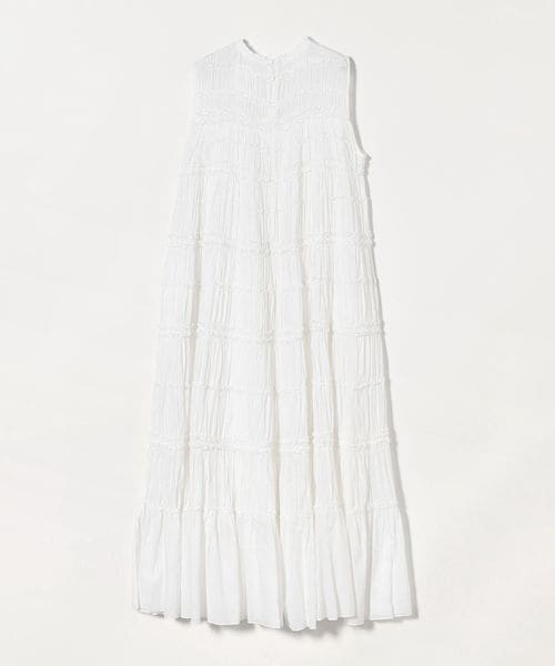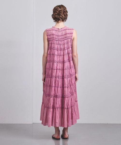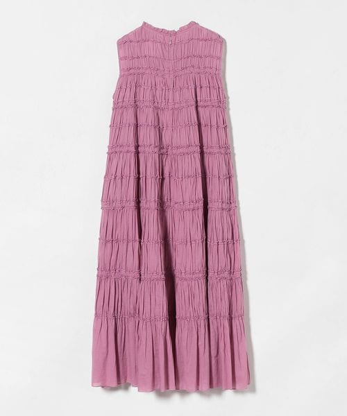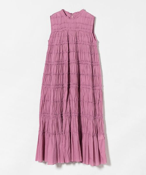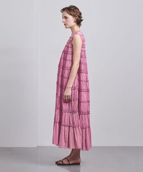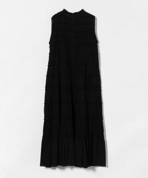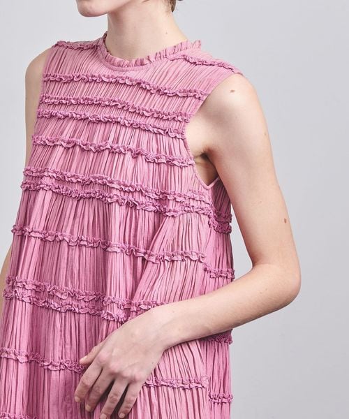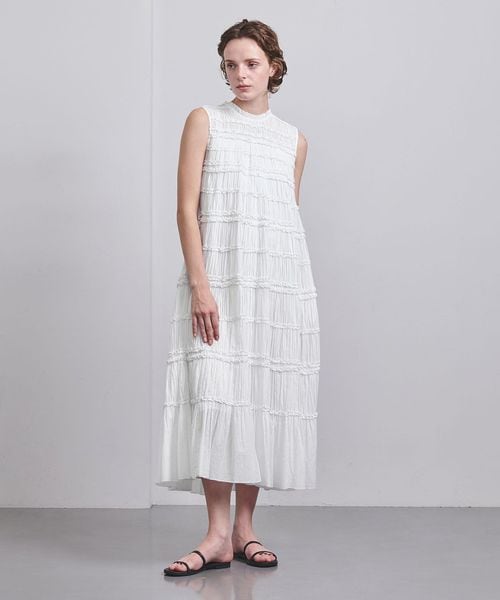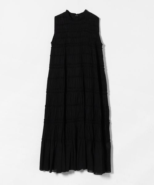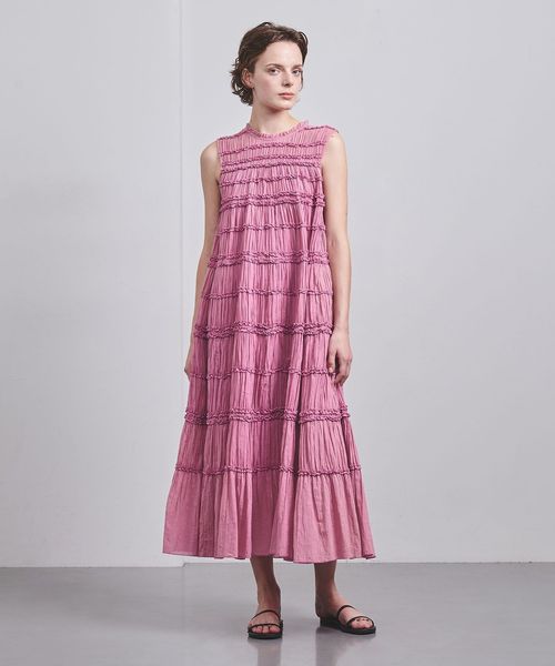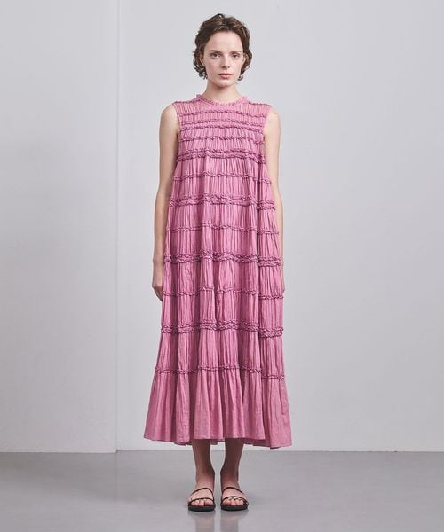 ギャザーのボリュームが華やかな印象のノースリーブワンピース。