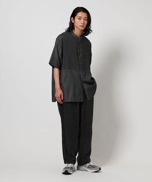 ゆったりとしたシルエットながら、バンドカラーを採用することで清潔感と気品を感じられる一着。