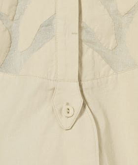 地図のようにも草花のようにも見える図案を書き起こし、一点ずつ表生地をカットしながら手縫いでアップリケを施したシャツ。