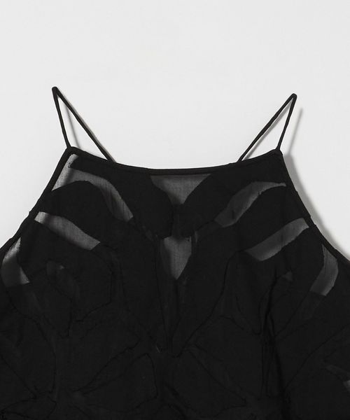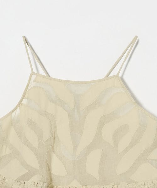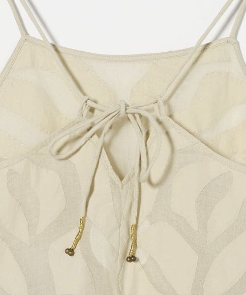 地図のようにも草花のようにも見える図案を書き起こし、一点ずつ表生地をカットしながら手縫いでアップリケを施したキャミソール。