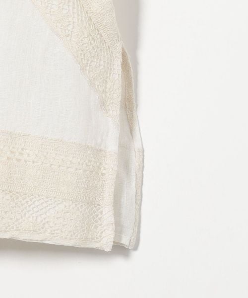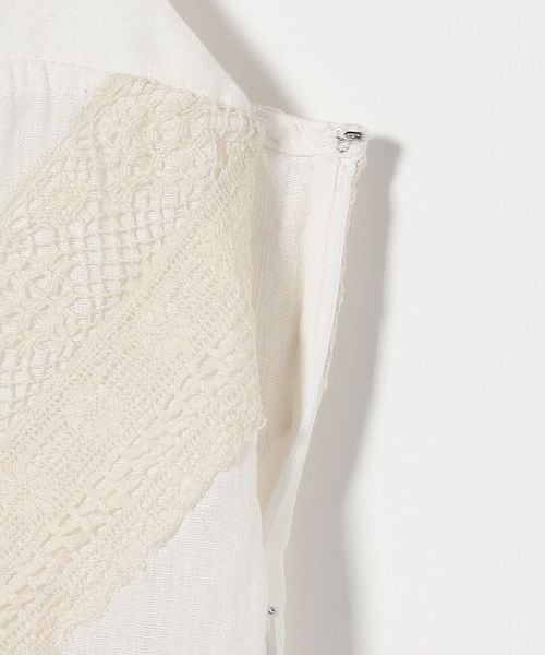 3種類のレースを重ね合わせることで一枚の図案を形成し、生地に縫い付けるのではなく、接ぎ合わせることで、ほどよい透け感に仕立てています。