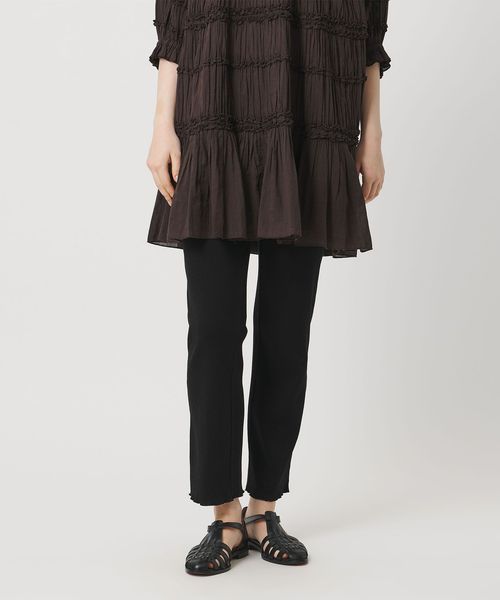 ひざ下からはややゆとりを持たせたシルエットで、チュニックやワンピースとのレイヤードにも好相性。