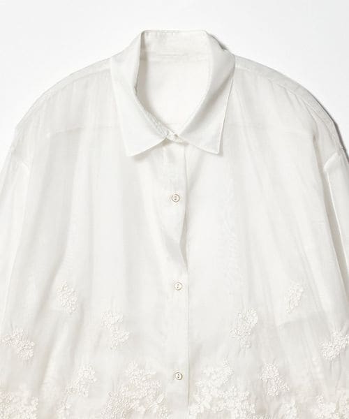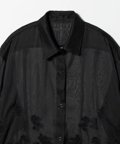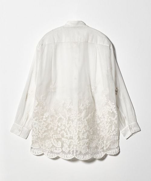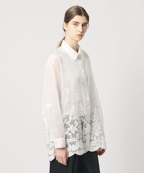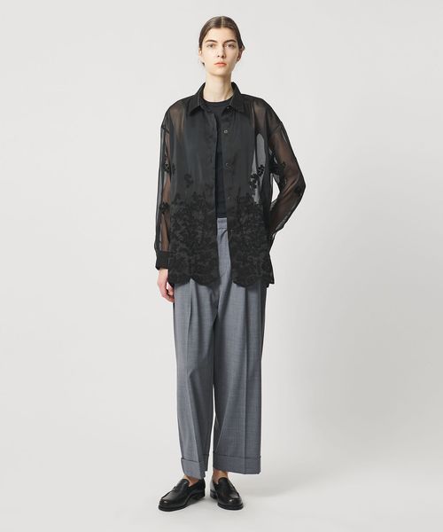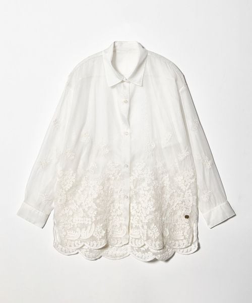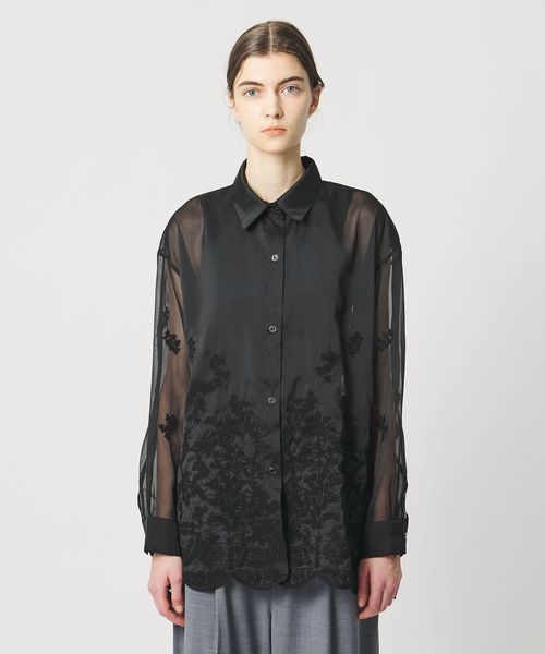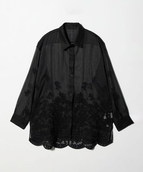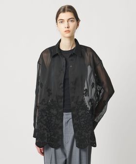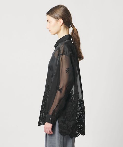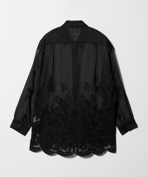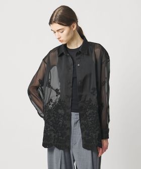 透け感を活かした、ゆとりのあるシルエットの長袖レースシャツ。