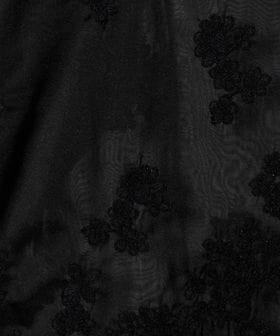 張りと透け感を併せもつポリエステル生地に、立体的で表情豊かなコード刺繍を施し、美しいレースへと仕立てました。