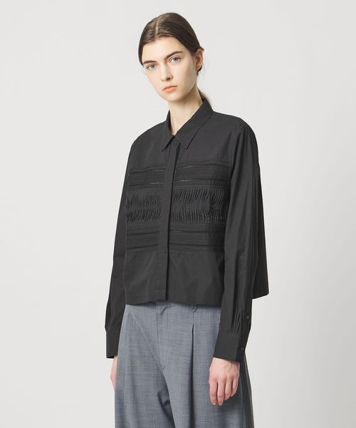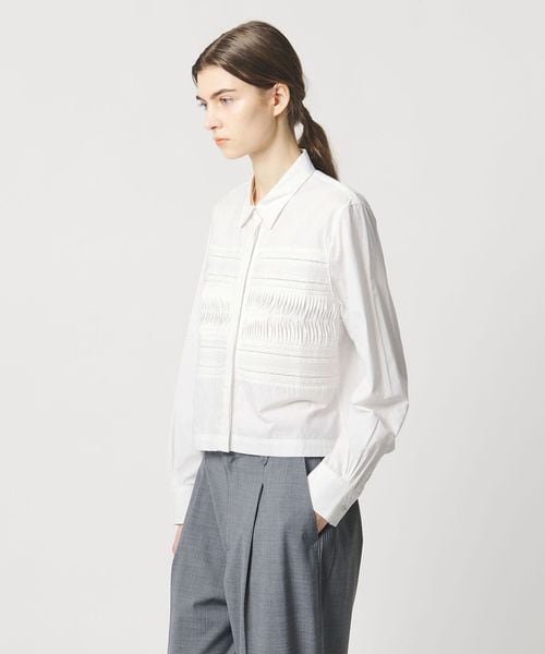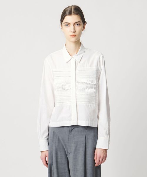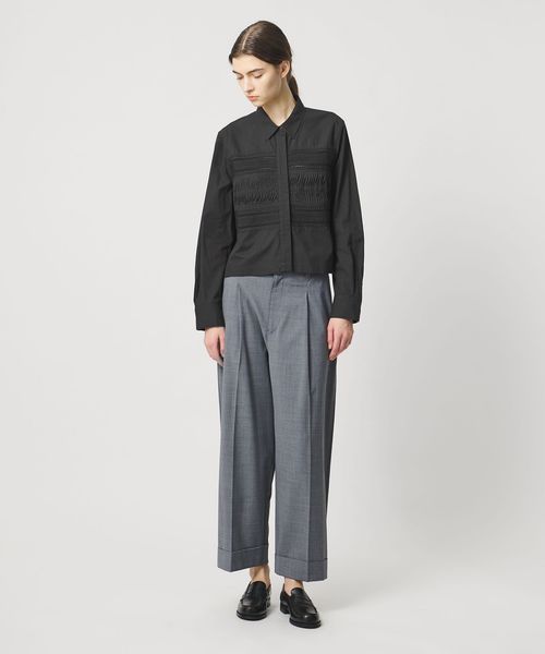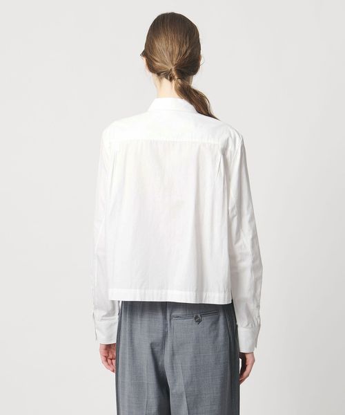 短めの着丈で軽やかな印象のシャツは、ワイドシルエットやタックパンツと好相性。