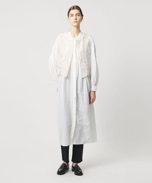 シンプルなトップスに重ねるだけで、上品なレイヤードスタイルが完成。