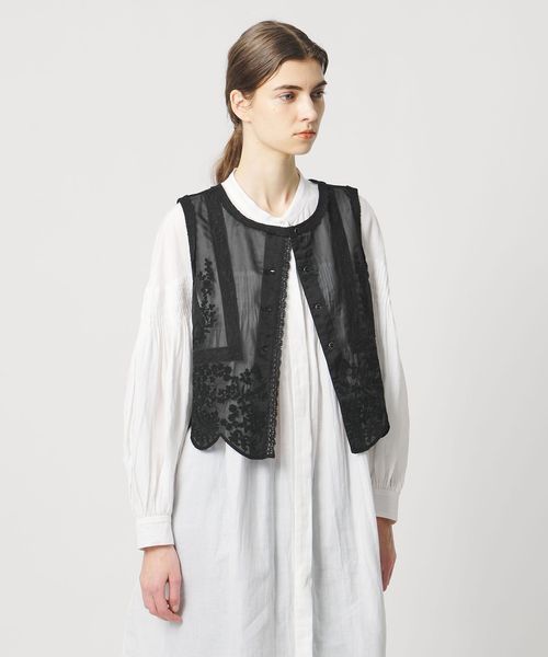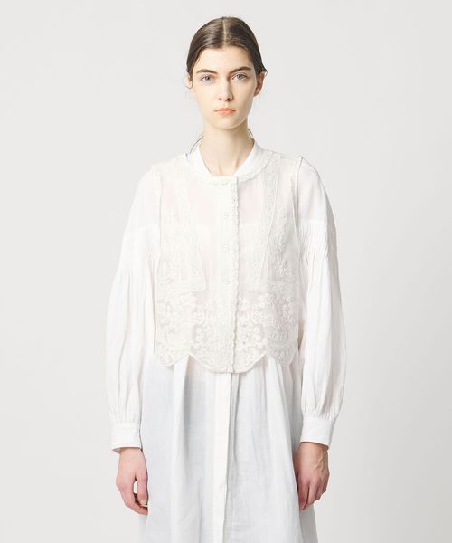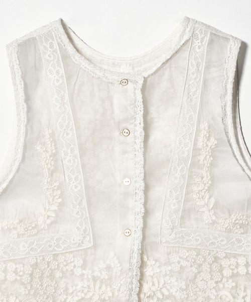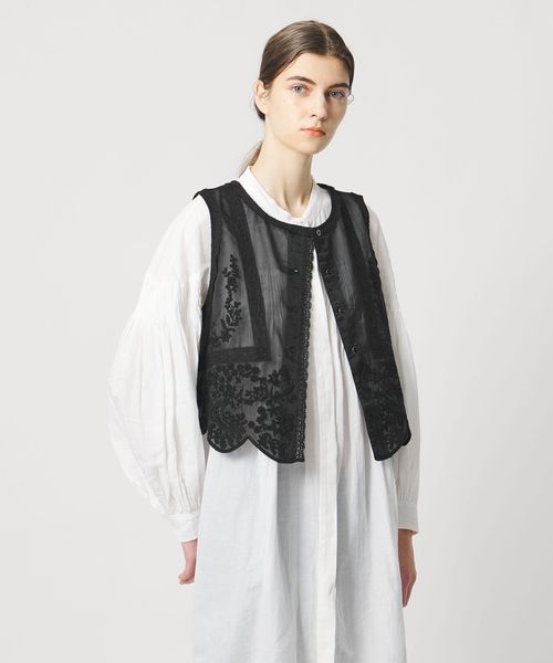 前後やボタンの開け閉めでアレンジの幅が広がり、透け感のあるレースは季節を問わず着回せるアイテムです。