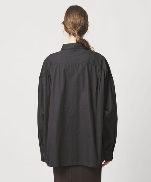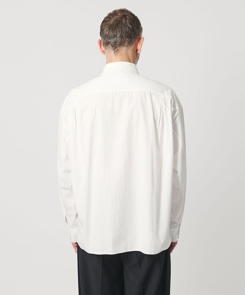 定番のボックスシルエットの長袖シャツを、襟付きのデザインで、やや短めの着丈バランスに仕上げた一着。