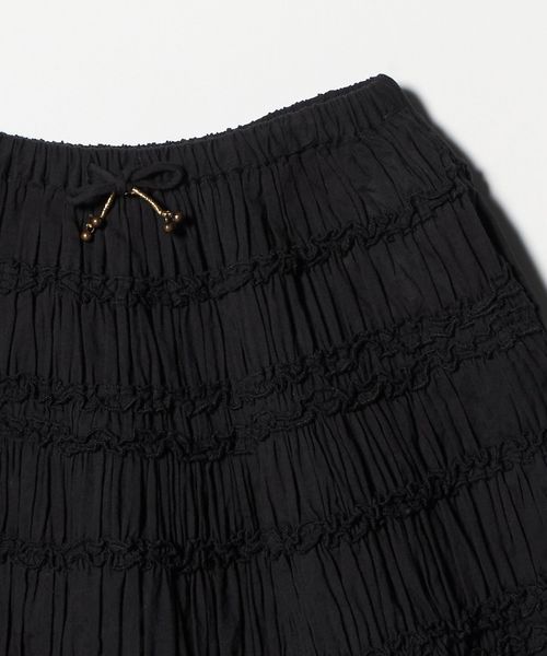 たっぷりと広がるAラインシルエットが、動くたびに軽やかな陰影を描くティアードスカート。