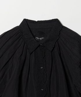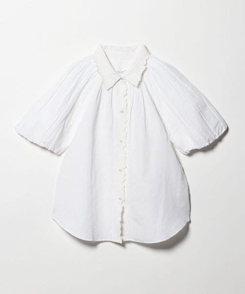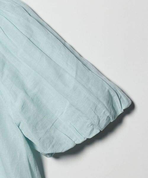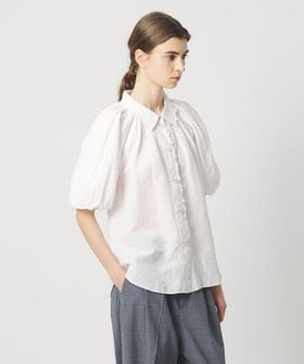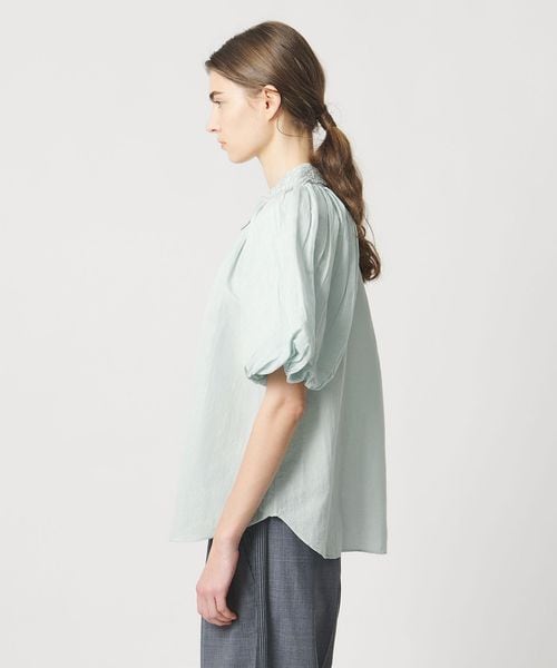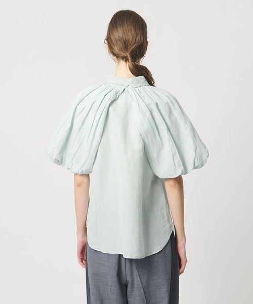 肘上までの長めの袖丈で、首もとに寄せたギャザーからふんわりとした立体的なボリュームを出したデザインが一枚で気映えのするアイテム。