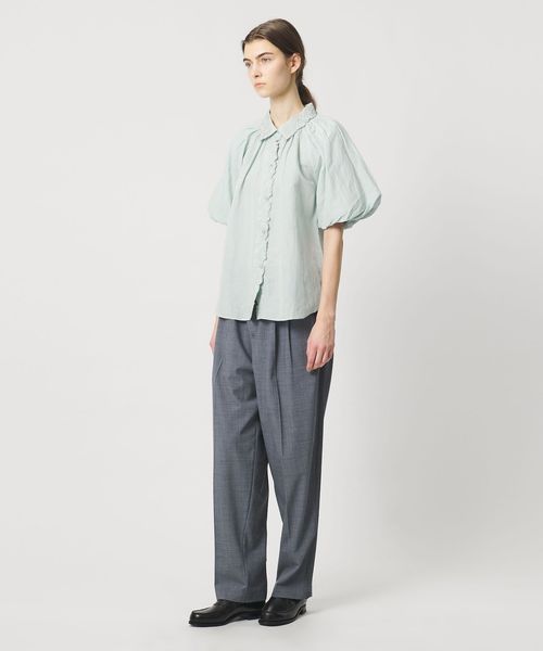 ふんわりスリーブにはシンプルなスラックスやデニム合わせが好相性。