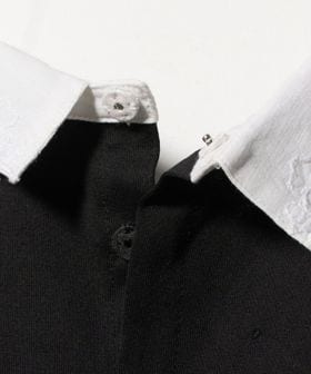 襟部分は2種類の刺繍を組み合わせ、チェーン状の刺繍は繊細さを引き立てながらも存在感を放つよう、二度重ねて仕上げました。