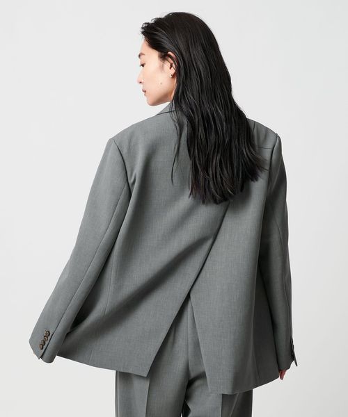 バックスタイルのアシンメトリーデザインが魅力のジャケット