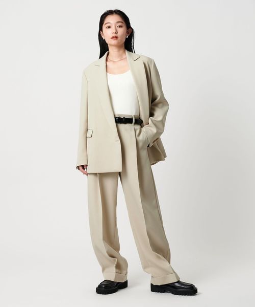 ラフなスタイルの羽織りとしての活用はもちろん、同素材のパンツとセットアップスタイルもおすすめです。