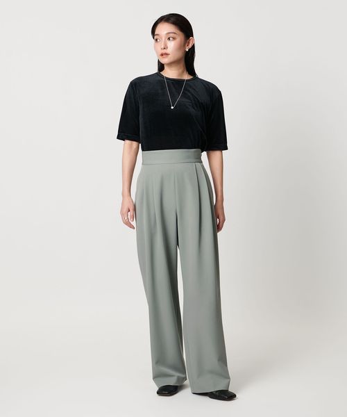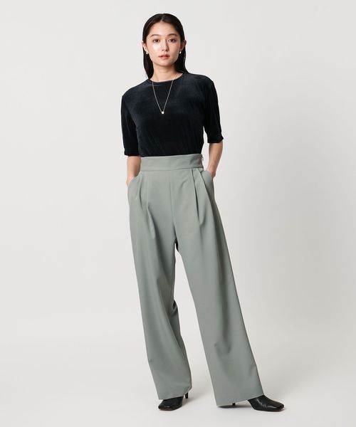 サイドのコンシールファスナー仕様で、フロントがフラットに仕上がった美しいシルエットのパンツ。