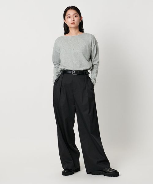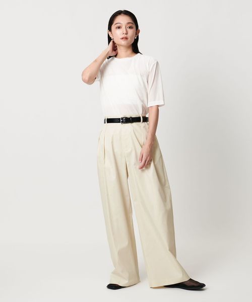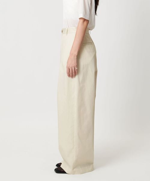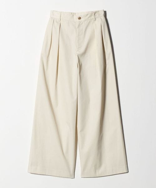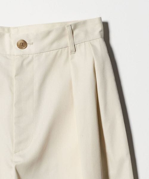 ハリのある生地と2タックがつくる、構築的なシルエットが魅力のチノパン。