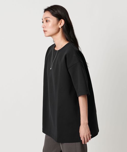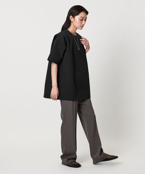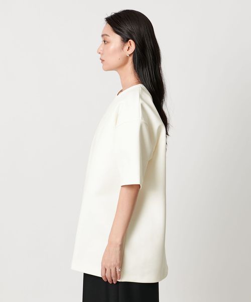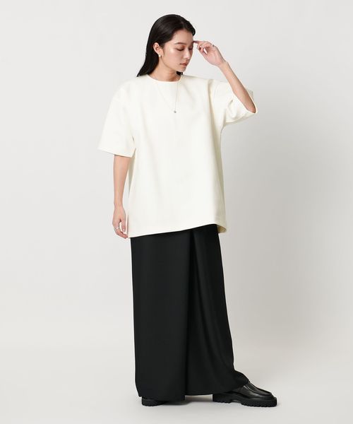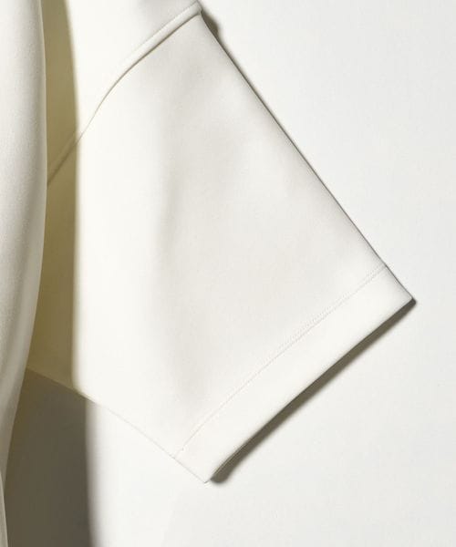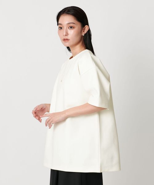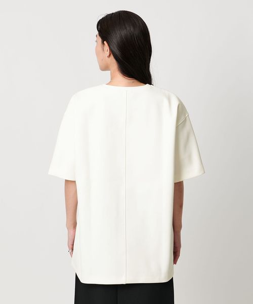 ハリのある素材がシンプルなデザインに立体的な美しさを添えるトップス。