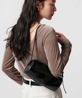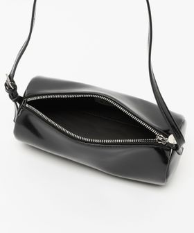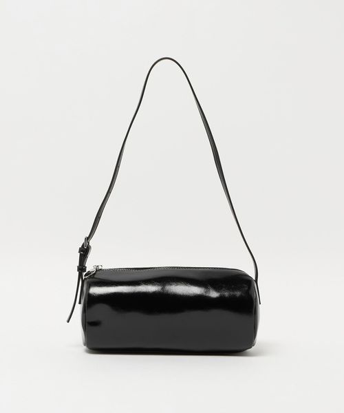 程よい光沢とシボのある素材を使用した、丸くてコンパクトな筒型のショルダーバッグ。