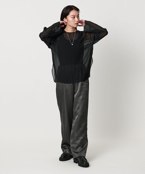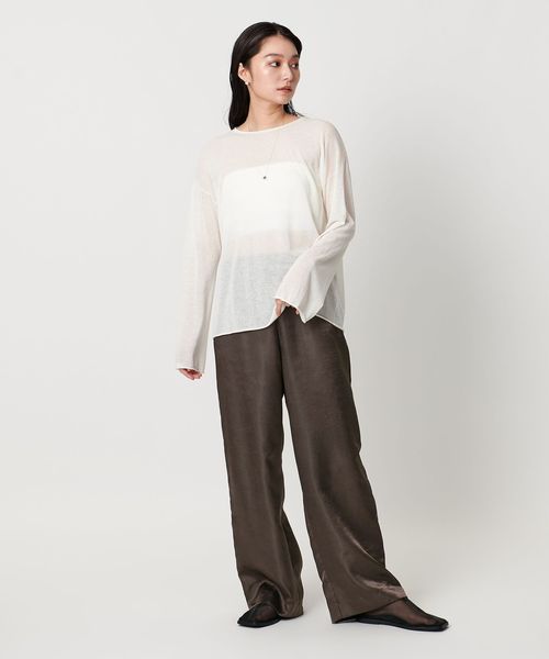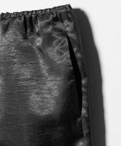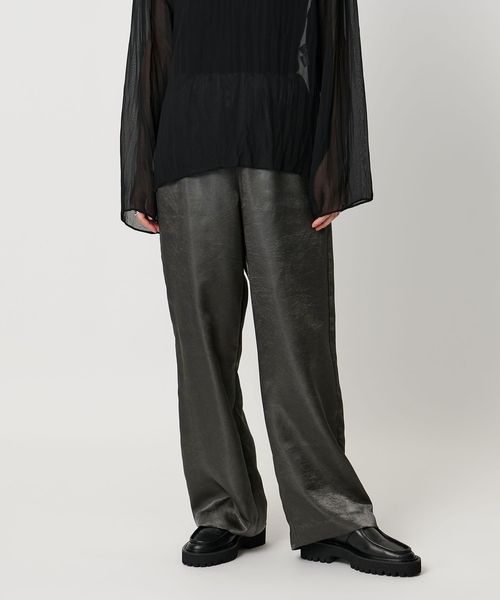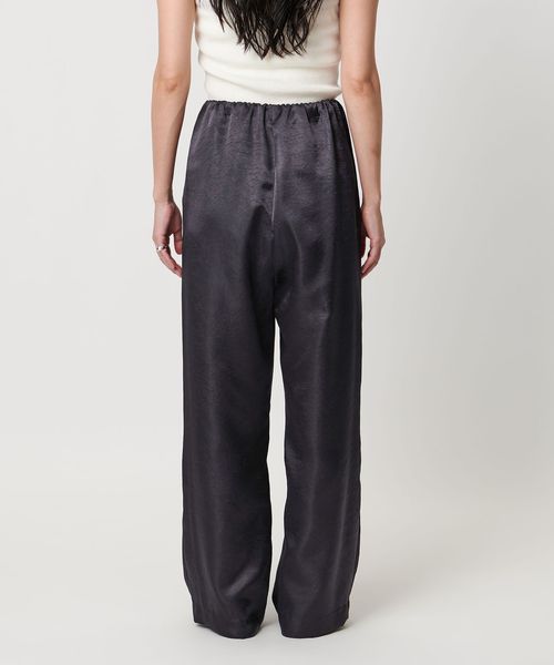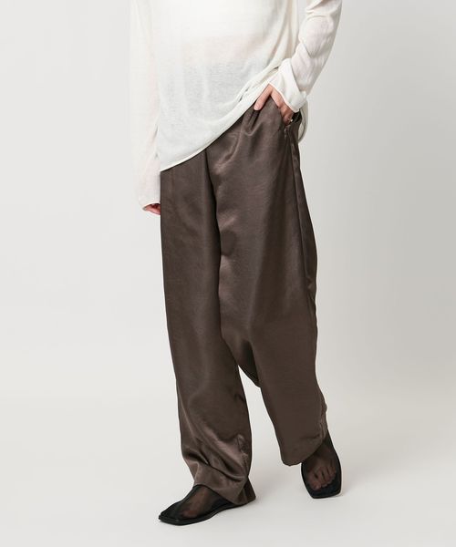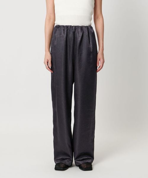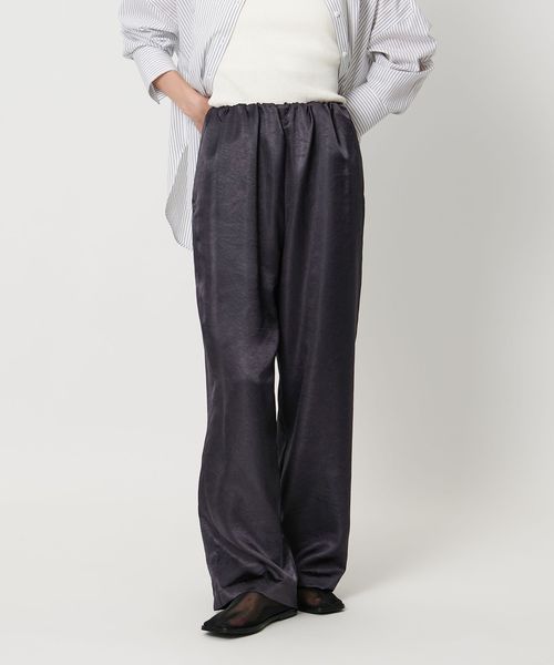 ワッシャー感のあるサテン素材が、動きに華やかさを添えるイージーパンツ。