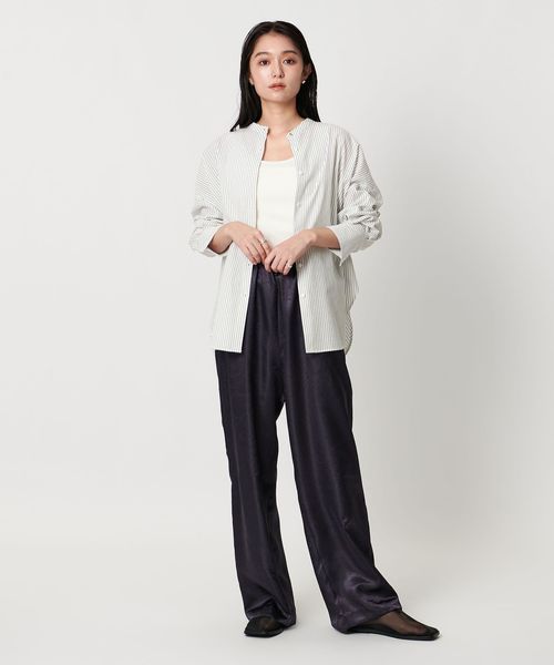 ワイドパンツやタック入りのボトムと合わせて、品のあるカジュアルスタイルに。