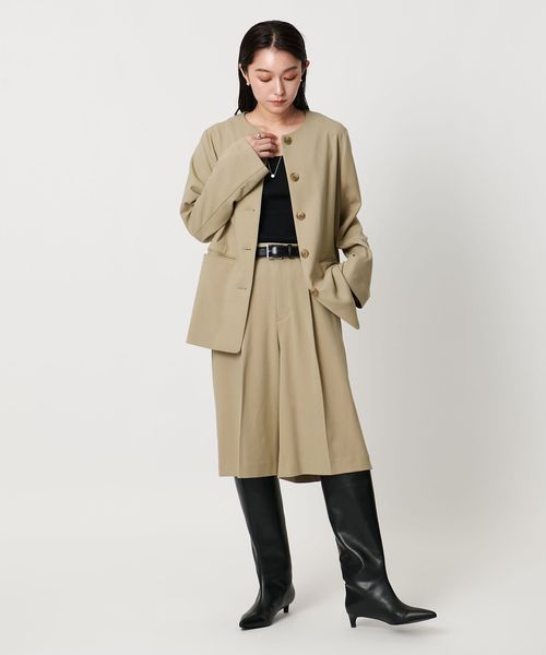 同素材のシャツジャケットとセットアップで、感度高く都会的な着こなしを楽しめます。