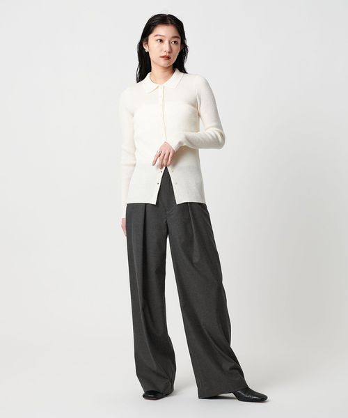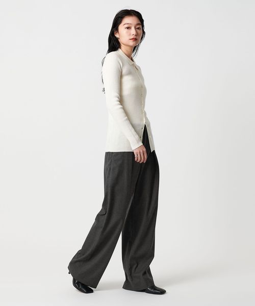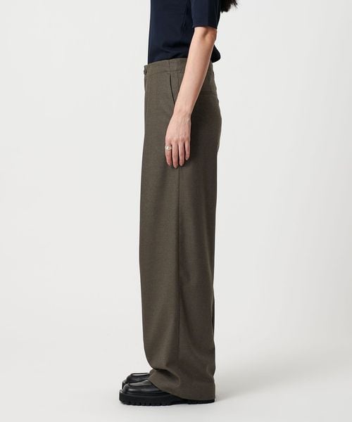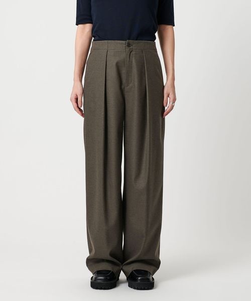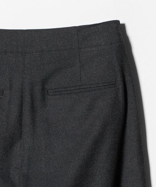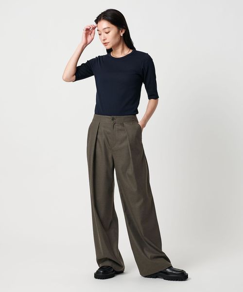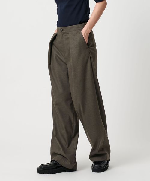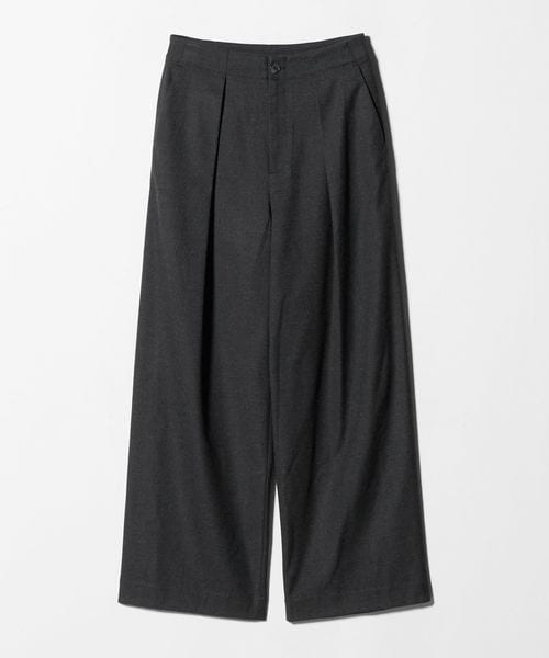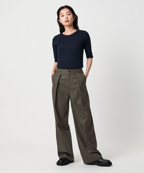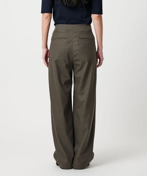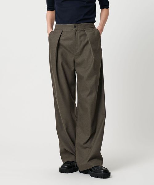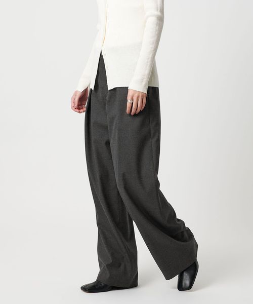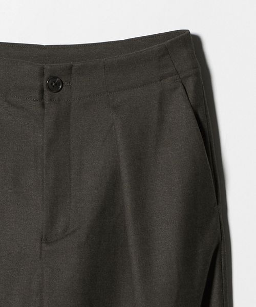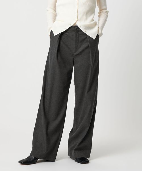 ハリ感のある素材が、シルエットを美しく引き立てるタックパンツ。
