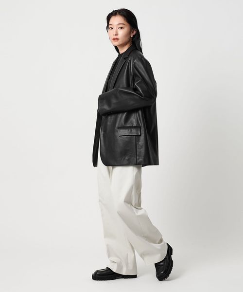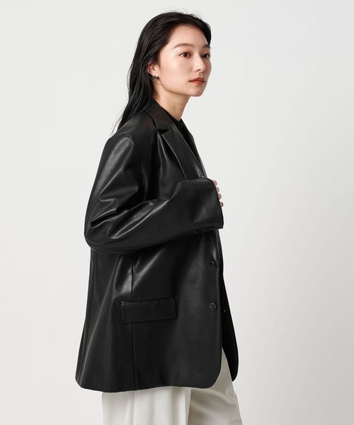 カジュアルからモードまで幅広く活躍するレザーライクなジャケット。
