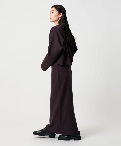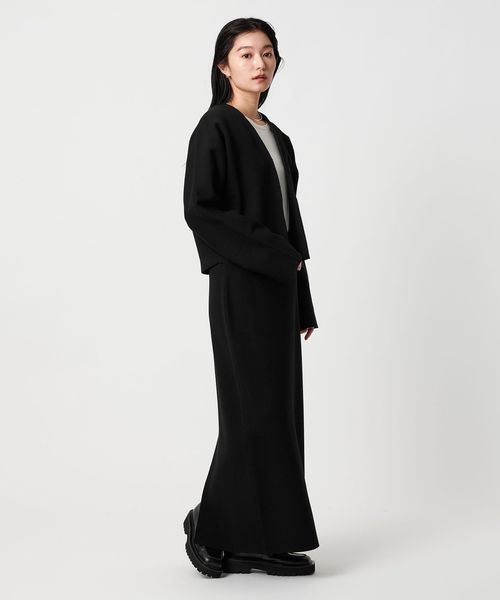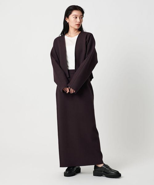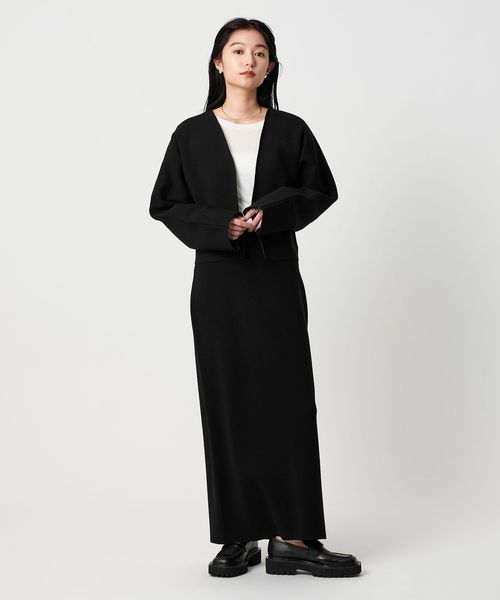 同素材のカーディガンと合わせて、セットアップでの着こなしがおすすめです。