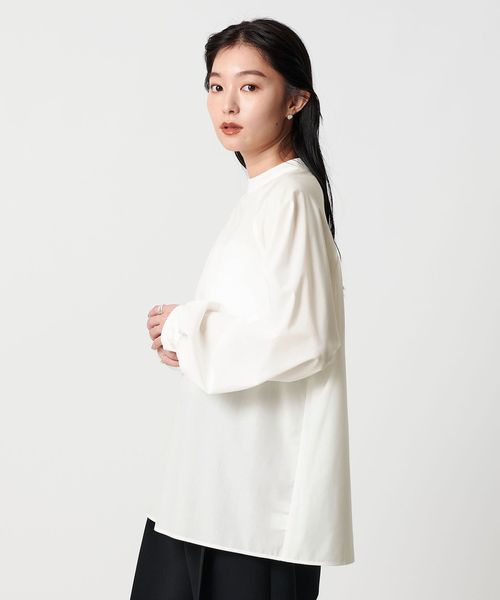 程よいスタンドカラーが、顔まわりに凛とした印象を添えるブラウス。