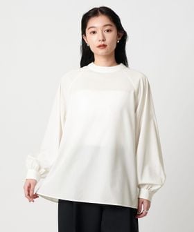 ラグランスリーブで肩のラインを美しく見せ、袖口のギャザーが立体感を演出します。