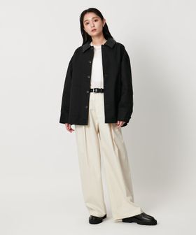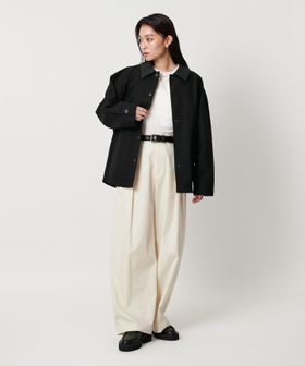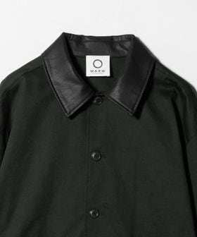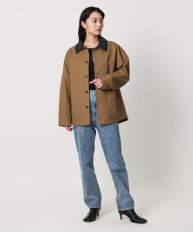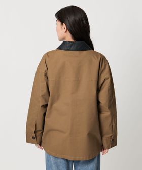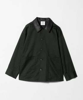 ハリのあるコットンキャンバス生地を使用し、衿を合成皮革仕様にしております。