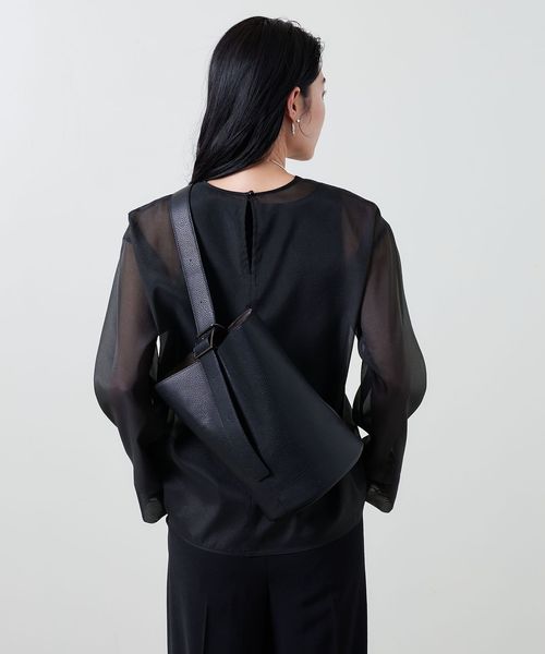 表側と裏側の生地を貼り合せて1枚仕立てのような作りにしていることで、大ぶりながら軽さのある作りになっています。